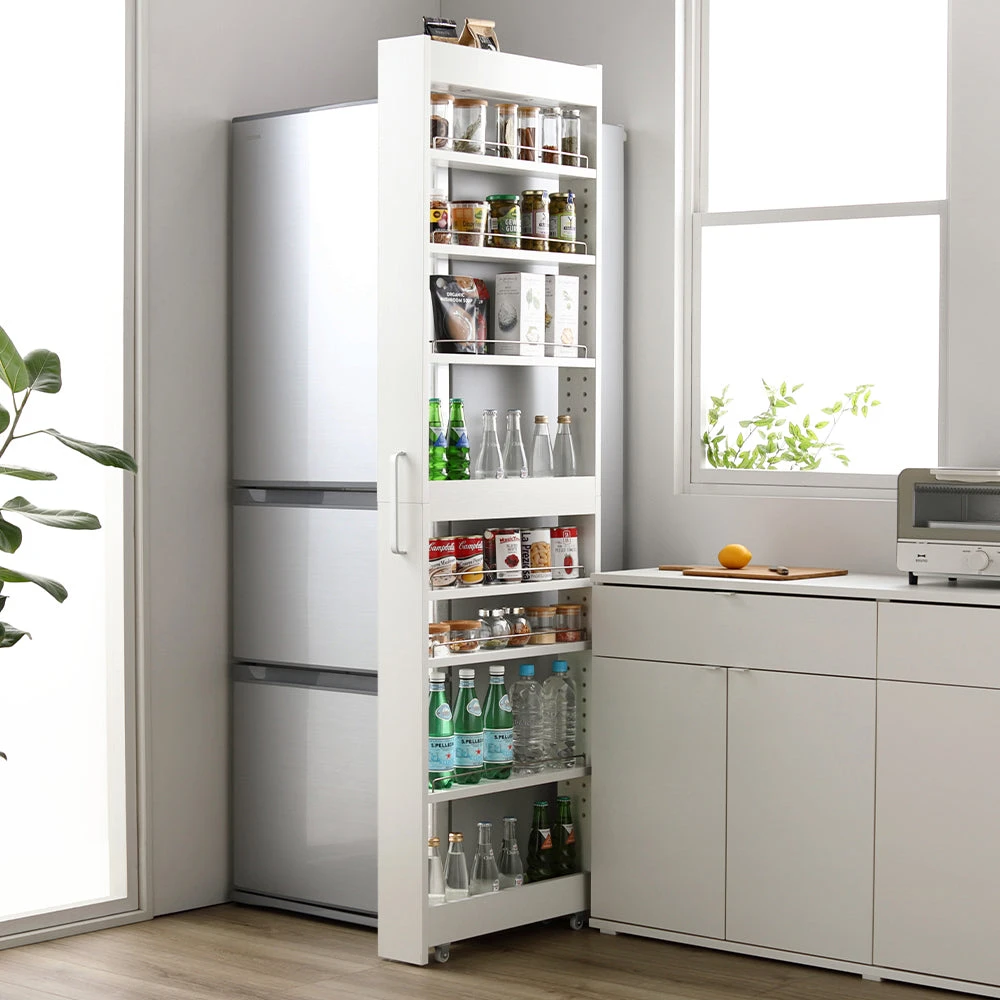 デッドスペースを収納化し、取っ手付きで扱いやすいすき間収納ラック ホワイト ハイタイプ(幅14cm)
