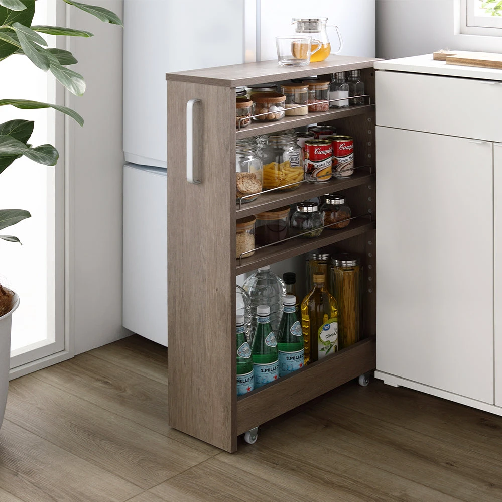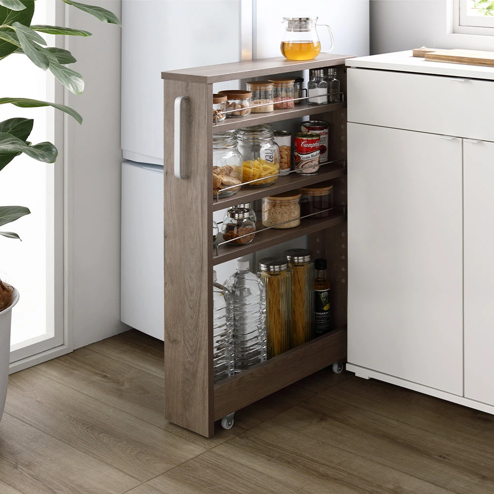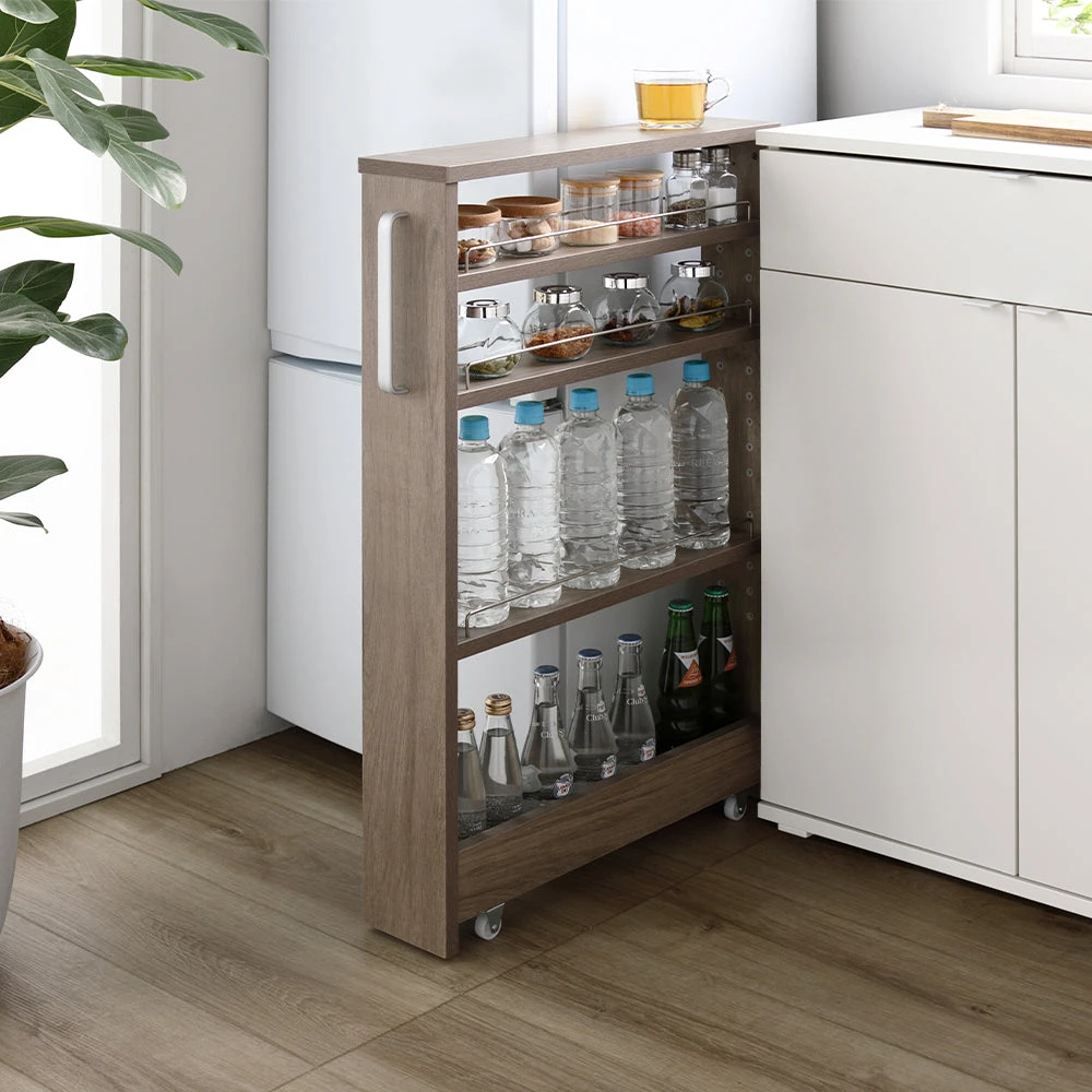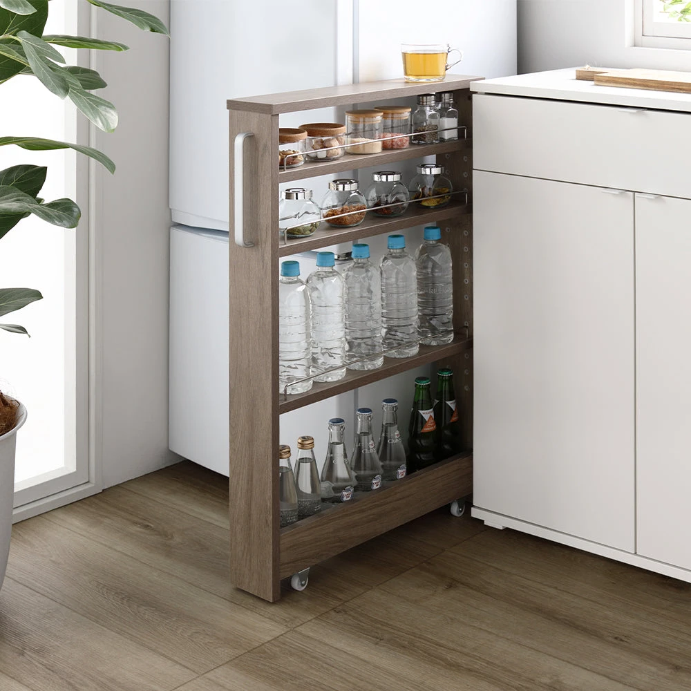 デッドスペースを収納化し、取っ手付きで扱いやすいすき間収納ラック グレージュ ロータイプ(幅18cm)