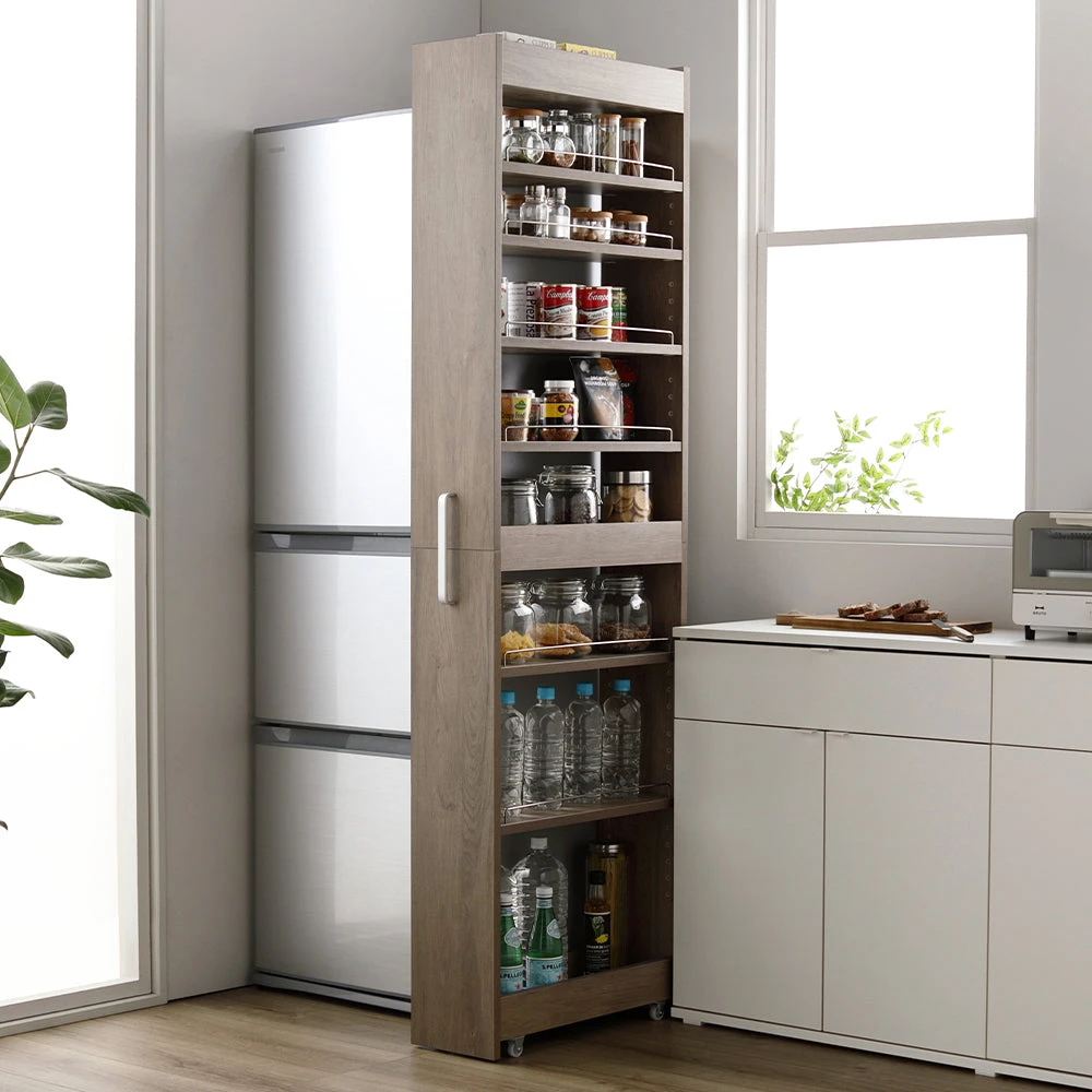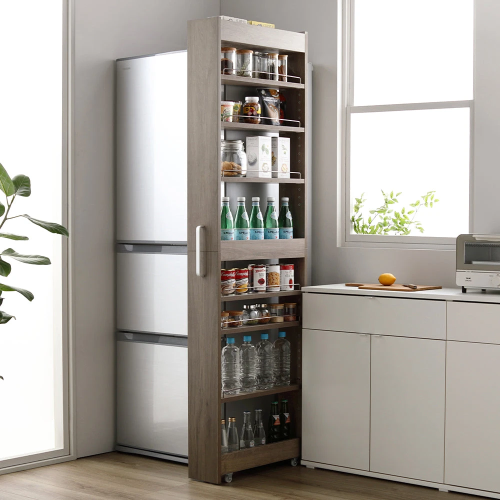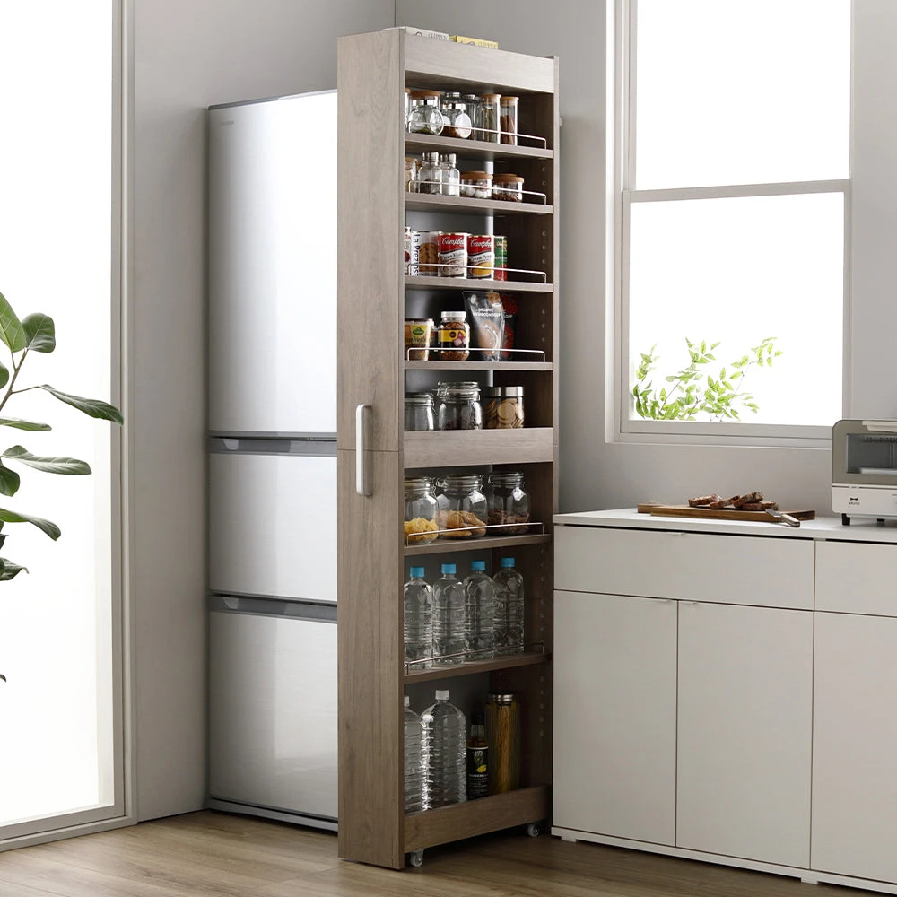 デッドスペースを収納化し、取っ手付きで扱いやすいすき間収納ラック グレージュ ハイタイプ(幅18cm)