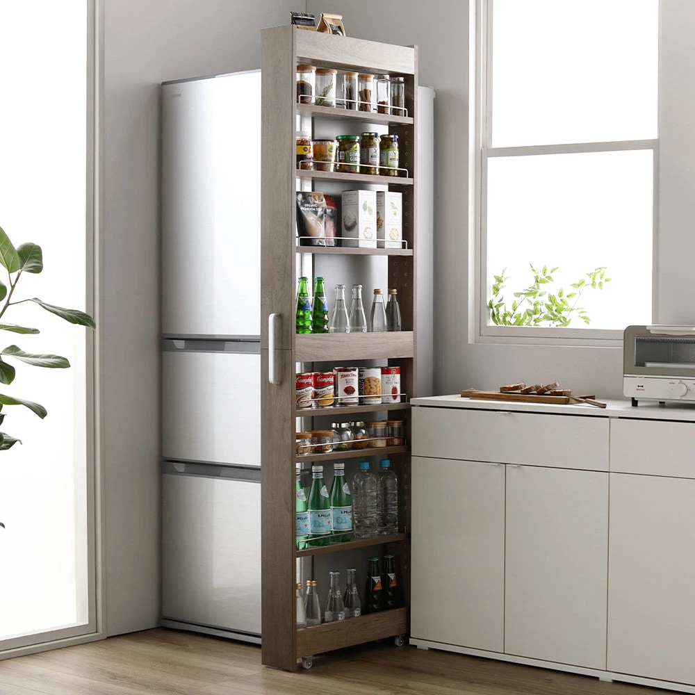 デッドスペースを収納化し、取っ手付きで扱いやすいすき間収納ラック グレージュ ハイタイプ(幅14cm)