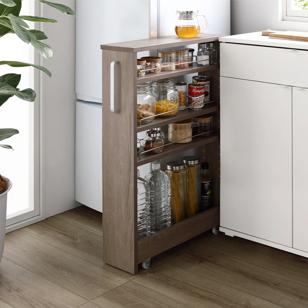 デッドスペースを収納化し、取っ手付きで扱いやすいすき間収納ラック グレージュ ロータイプ(幅10cm)