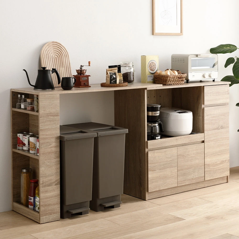 下ごしらえから配膳まで一台で完結する伸長式テーブル付きキッチン収納 2点セット ナチュラル 幅104~178cm