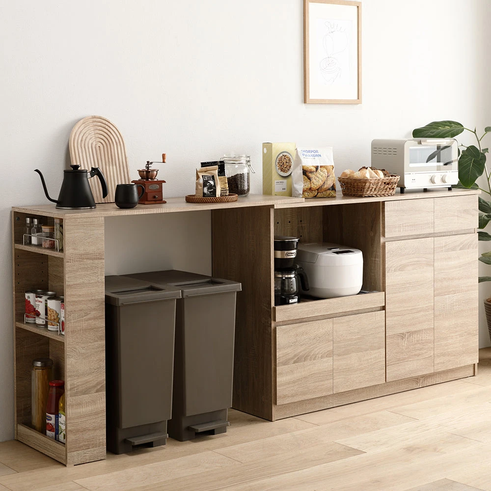 下ごしらえから配膳まで一台で完結する伸長式テーブル付きキッチン収納 2点セット ナチュラル 幅133~207cm