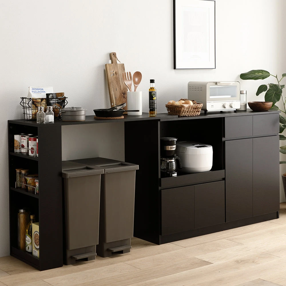 下ごしらえから配膳まで一台で完結する伸長式テーブル付きキッチン収納 2点セット ダークブラウン 幅133~207cm