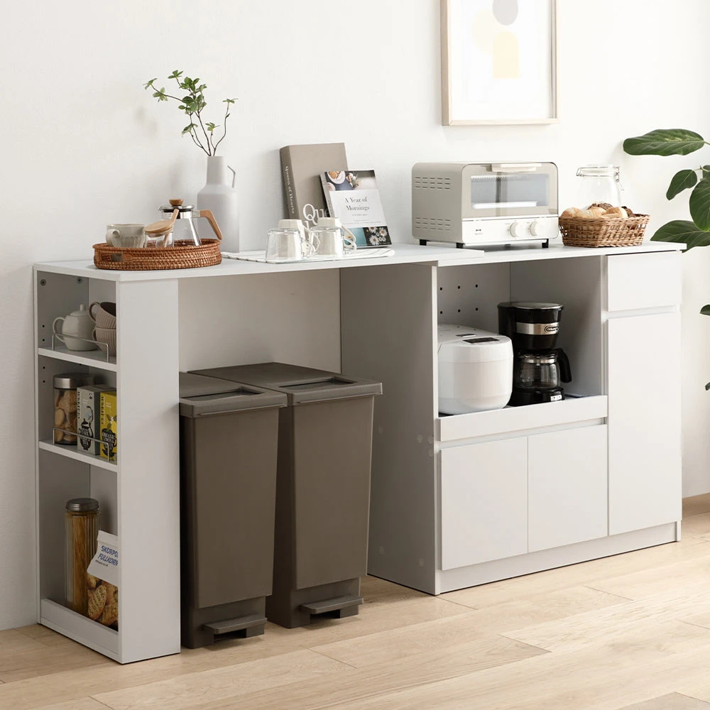 下ごしらえから配膳まで一台で完結する伸長式テーブル付きキッチン収納 2点セット ホワイト 幅133~207cm