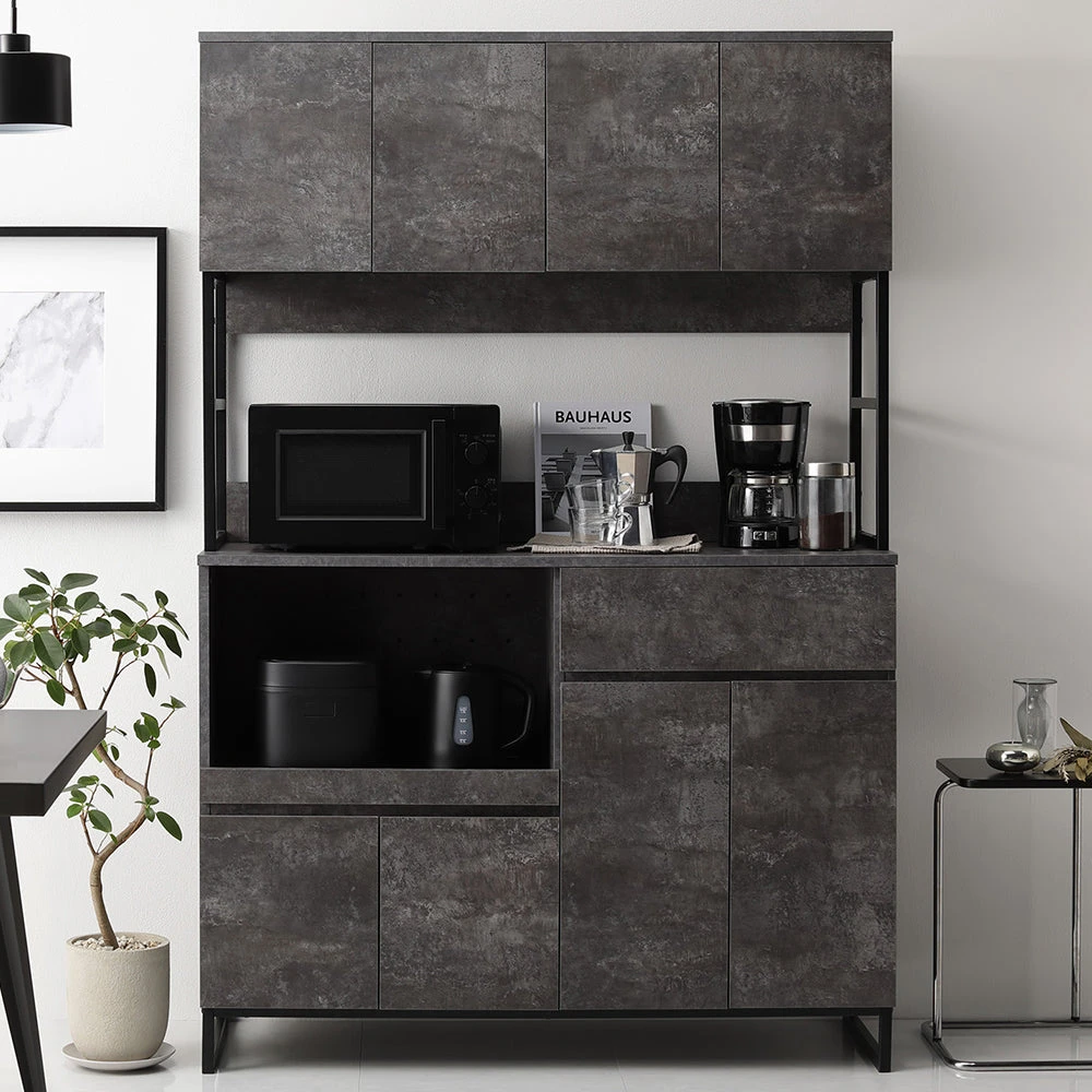 下ごしらえから配膳まで一台で完結する伸長式テーブル付きキッチン収納 2点セット ダークブラウン 幅104~178cm