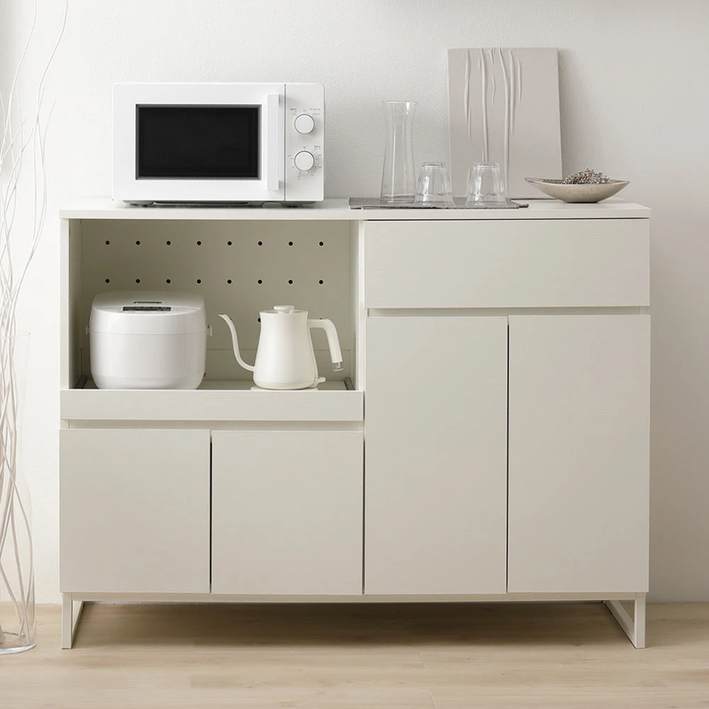 下ごしらえから配膳まで一台で完結する伸長式テーブル付きキッチン収納 2点セット ホワイト 幅104~178cm