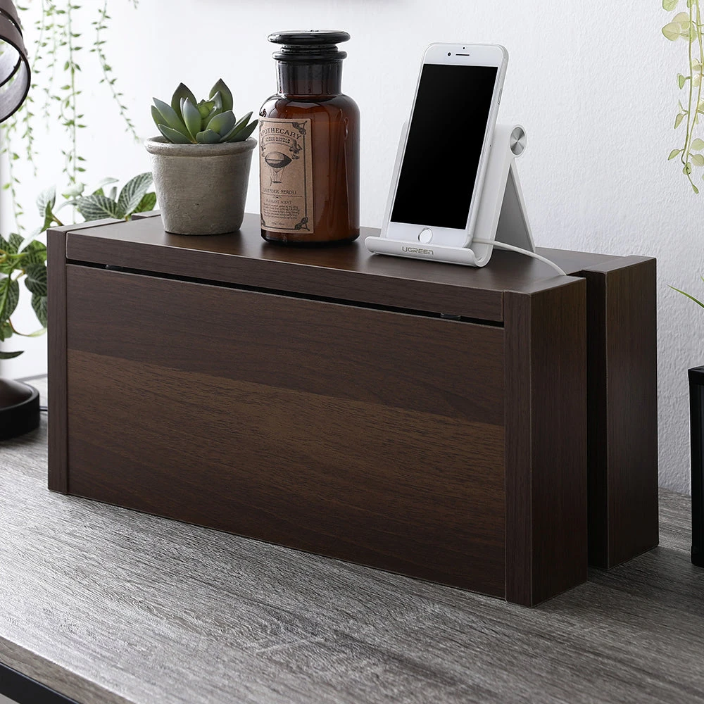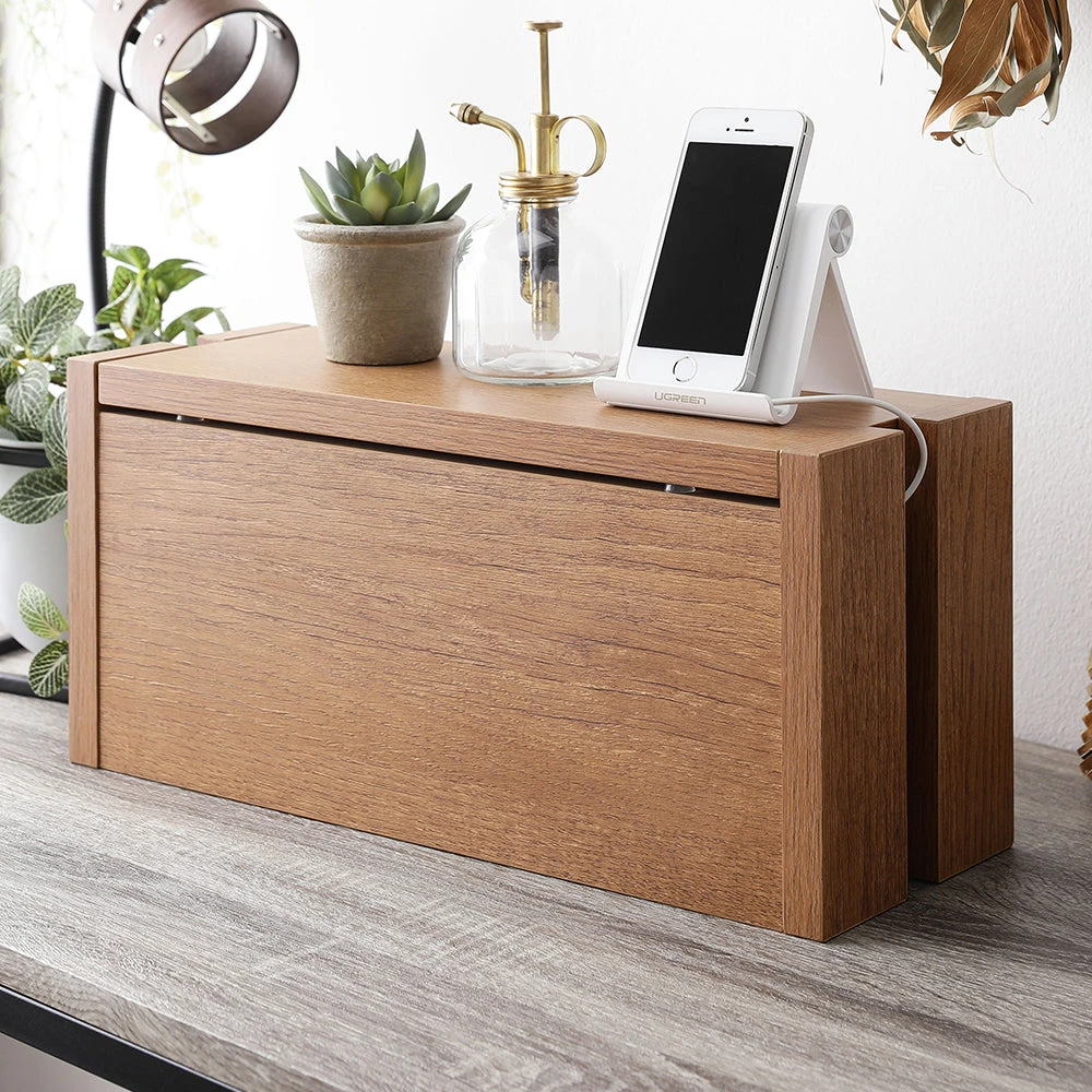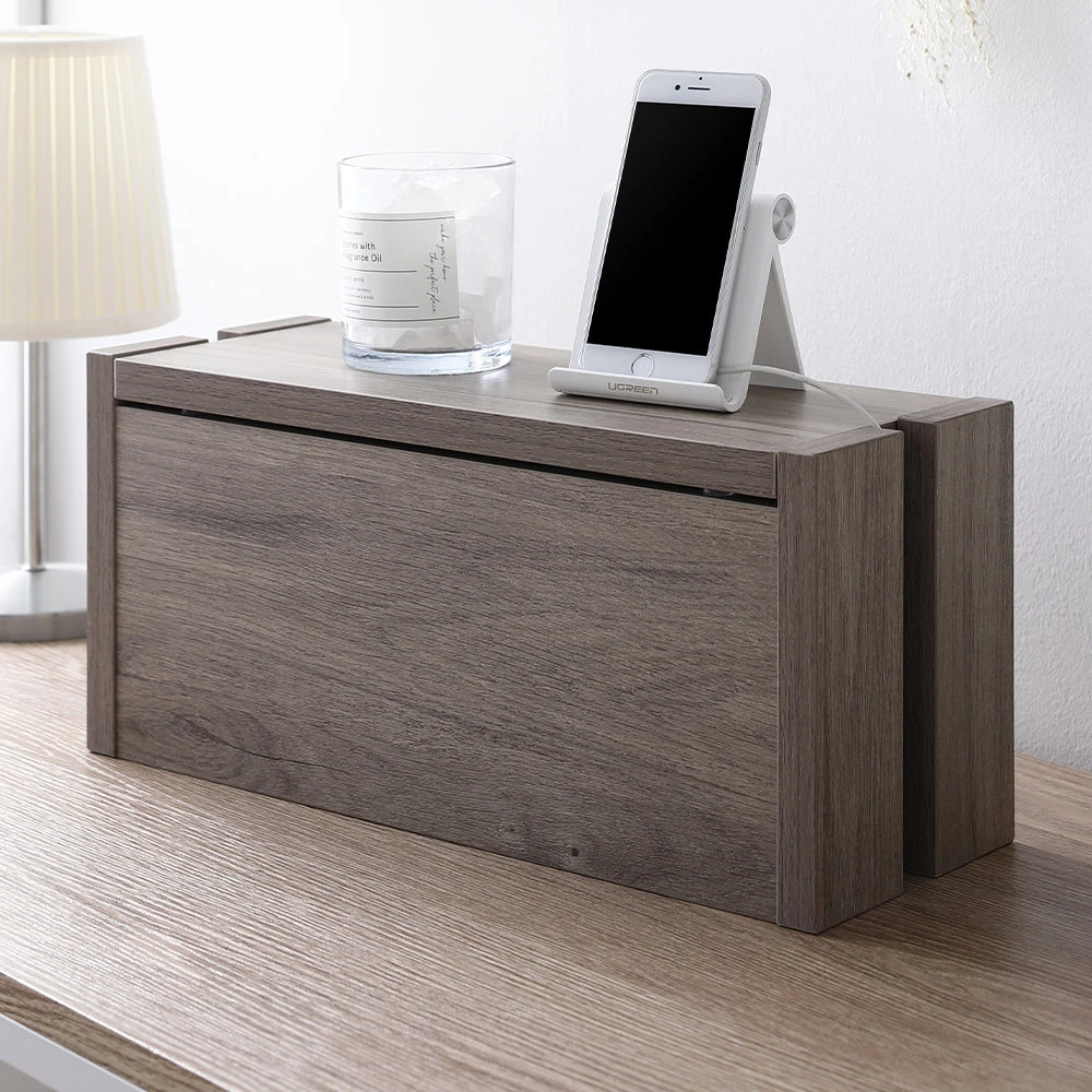 1配線を隠して見映えと使い勝手を両立するケーブル収納BOX チークウッド レギュラータイプ