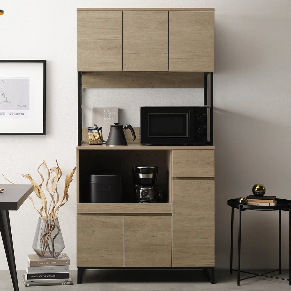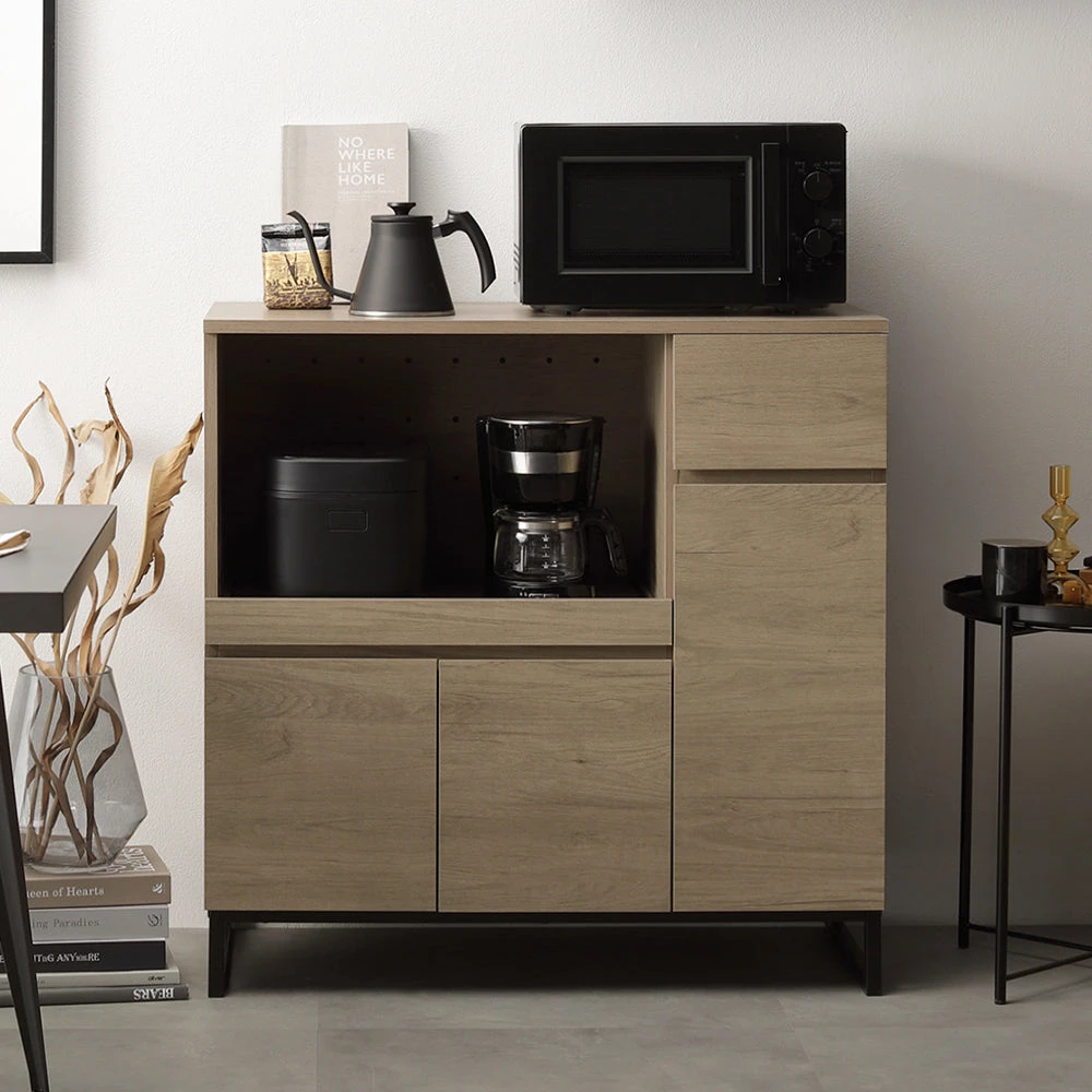 異素材の質感と広い作業面で家事がはかどるキッチンカウンター グレージュ キッチンボード 90cm幅