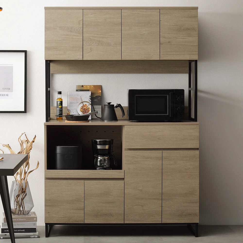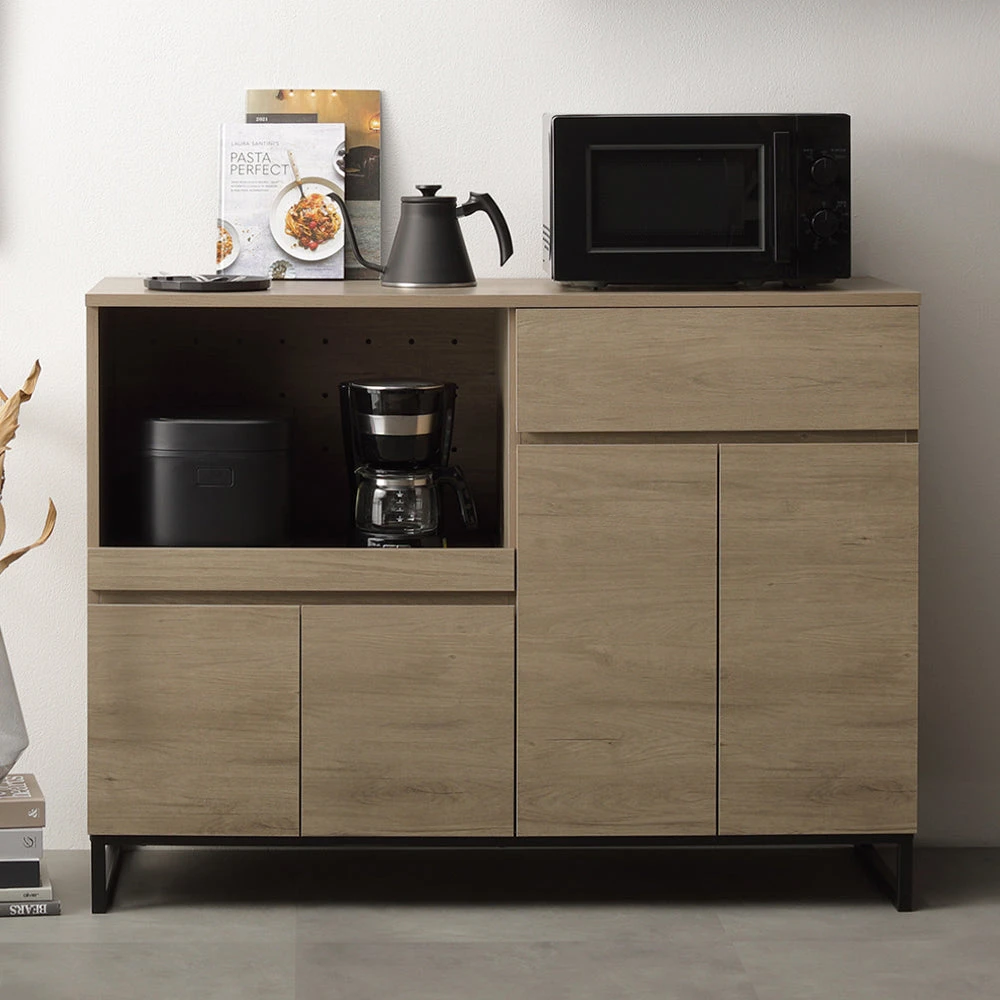 異素材の質感と広い作業面で家事がはかどるキッチンカウンター グレージュ キッチンボード 120cm幅