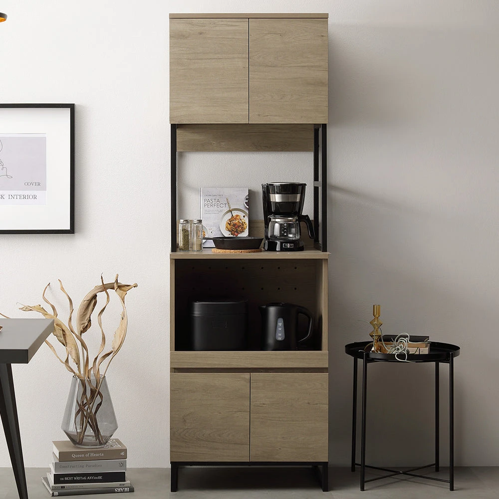 異素材の質感と広い作業面で家事がはかどるキッチンカウンター グレージュ キッチンボード 60cm幅