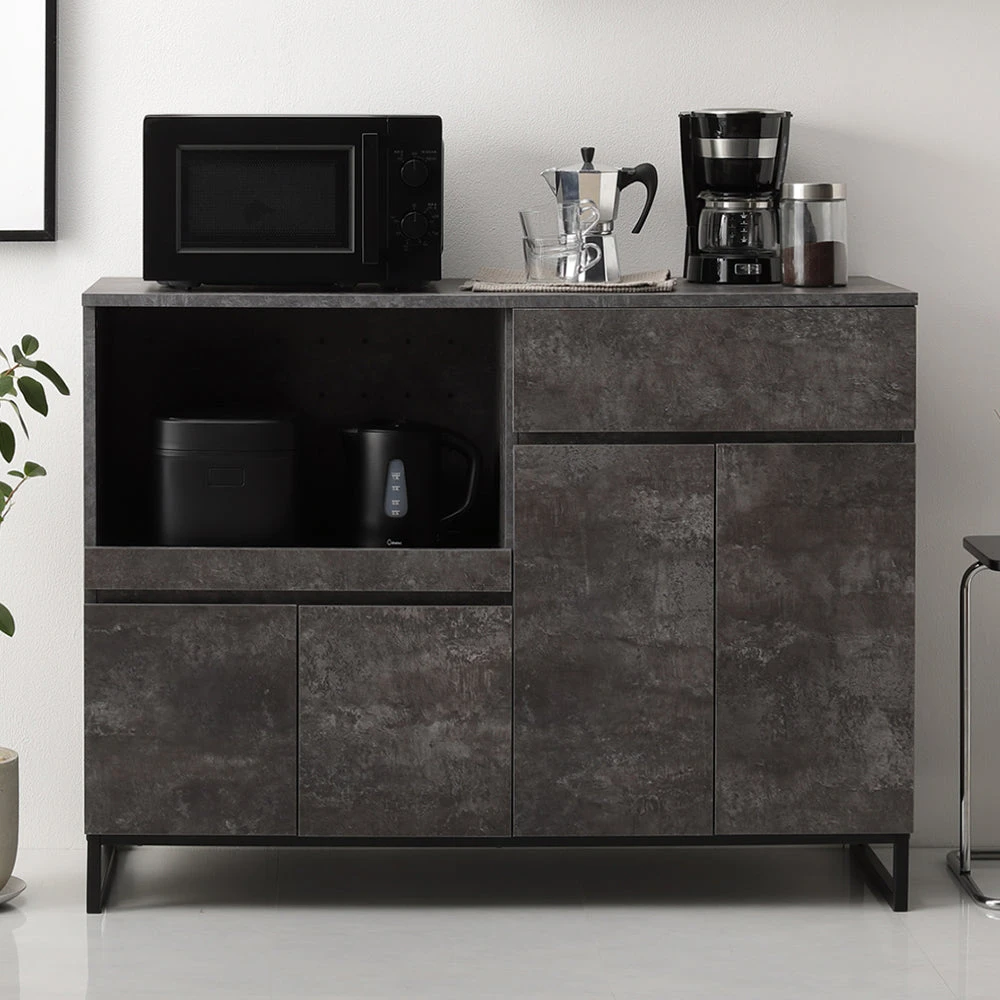 異素材の質感と広い作業面で家事がはかどるキッチンカウンター ストーングレー キッチンボード 120cm幅