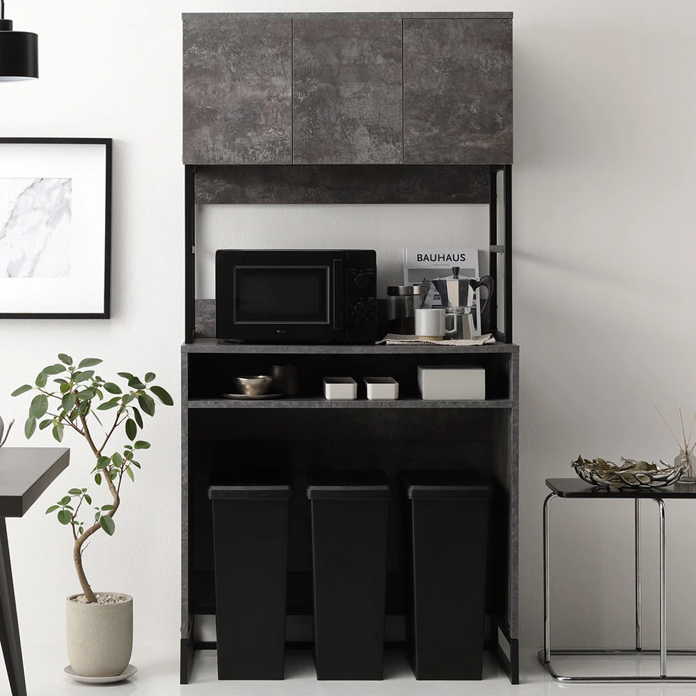 異素材の質感と広い作業面で家事がはかどるキッチンカウンター ストーングレー キッチンボード(ゴミ箱収納) 90cm幅
