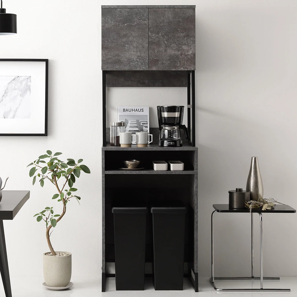 異素材の質感と広い作業面で家事がはかどるキッチンカウンター ストーングレー キッチンボード(ゴミ箱収納) 60cm幅