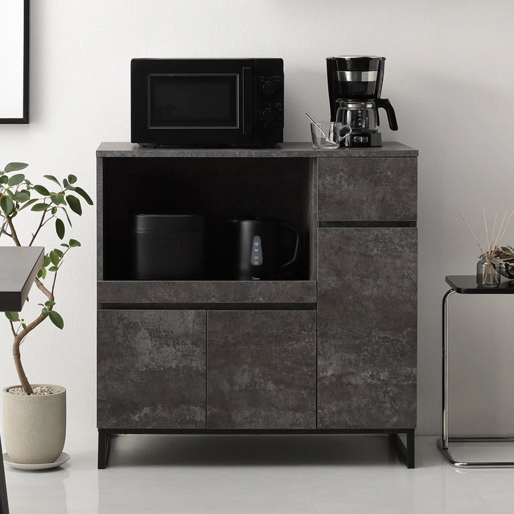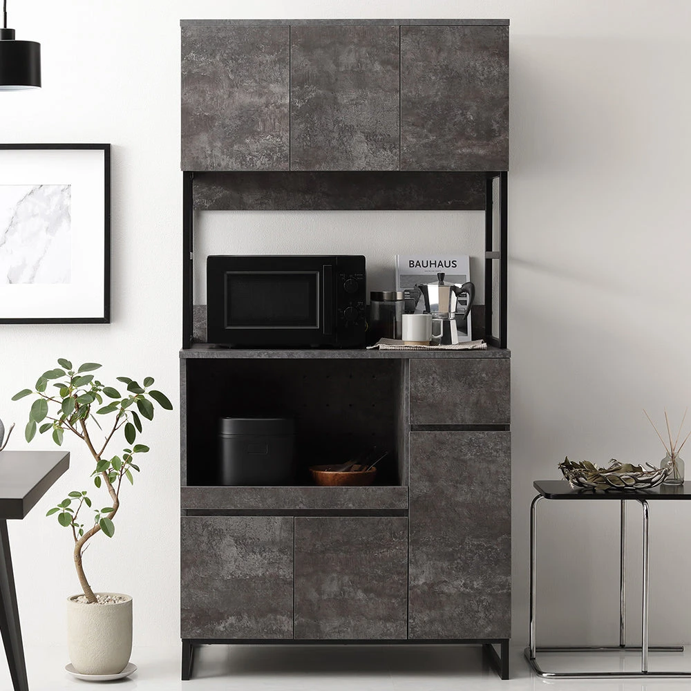 異素材の質感と広い作業面で家事がはかどるキッチンカウンター ストーングレー キッチンカウンター 90cm幅