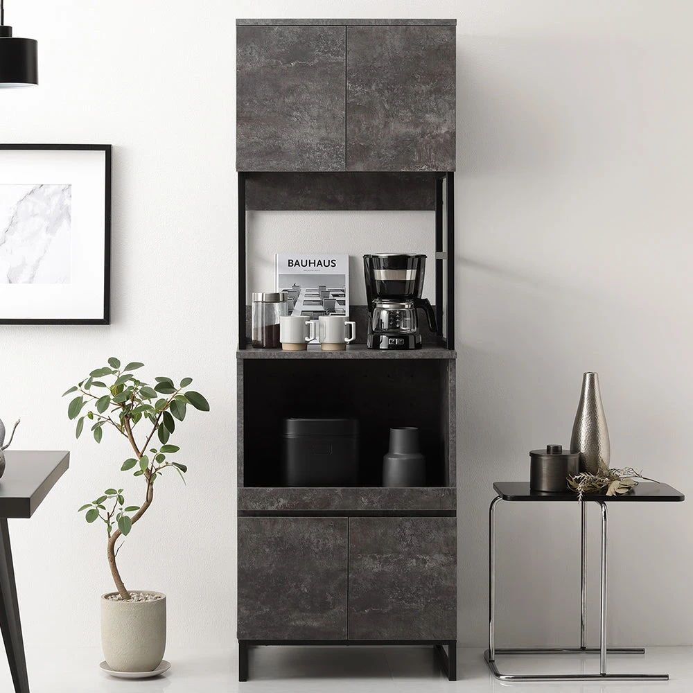 異素材の質感と広い作業面で家事がはかどるキッチンカウンター ストーングレー キッチンボード 60cm幅