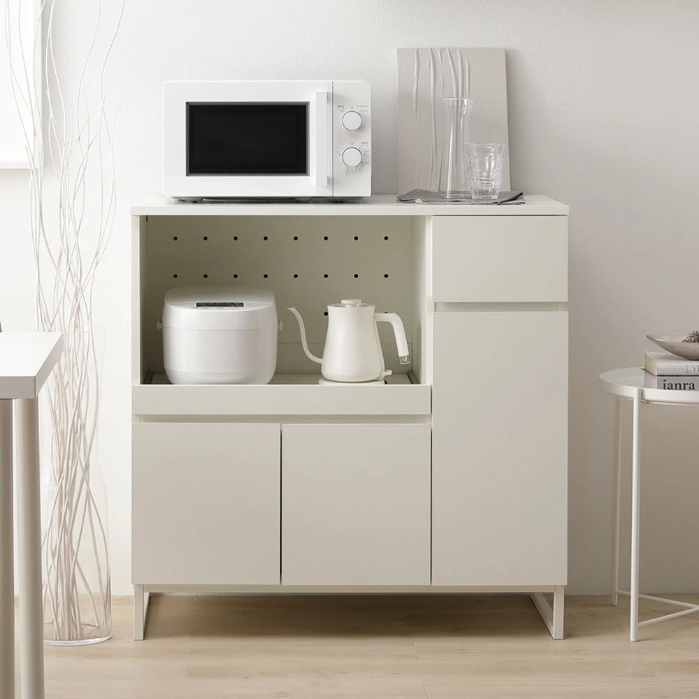 異素材の質感と広い作業面で家事がはかどるキッチンカウンター ホワイト キッチンカウンター 90cm幅