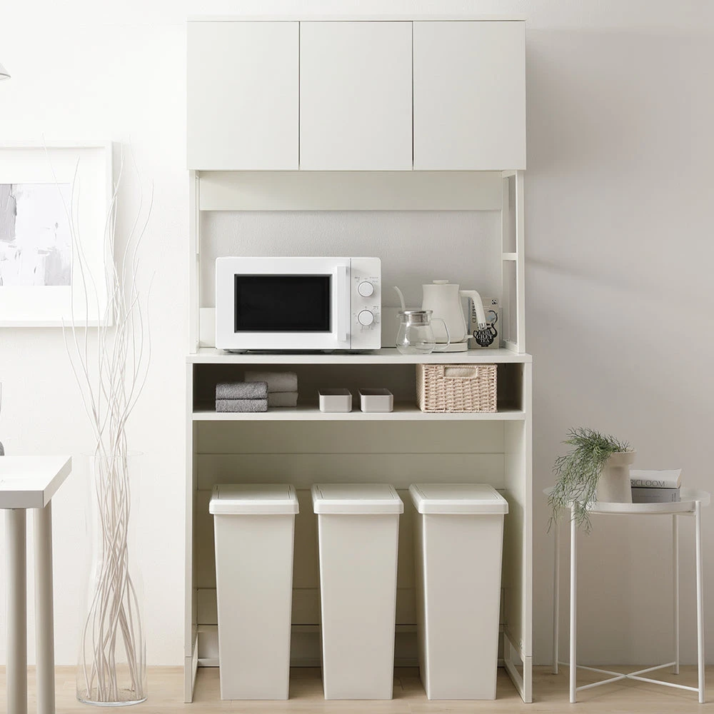 異素材の質感と広い作業面で家事がはかどるキッチンカウンター ホワイト キッチンボード(ゴミ箱収納) 90cm幅