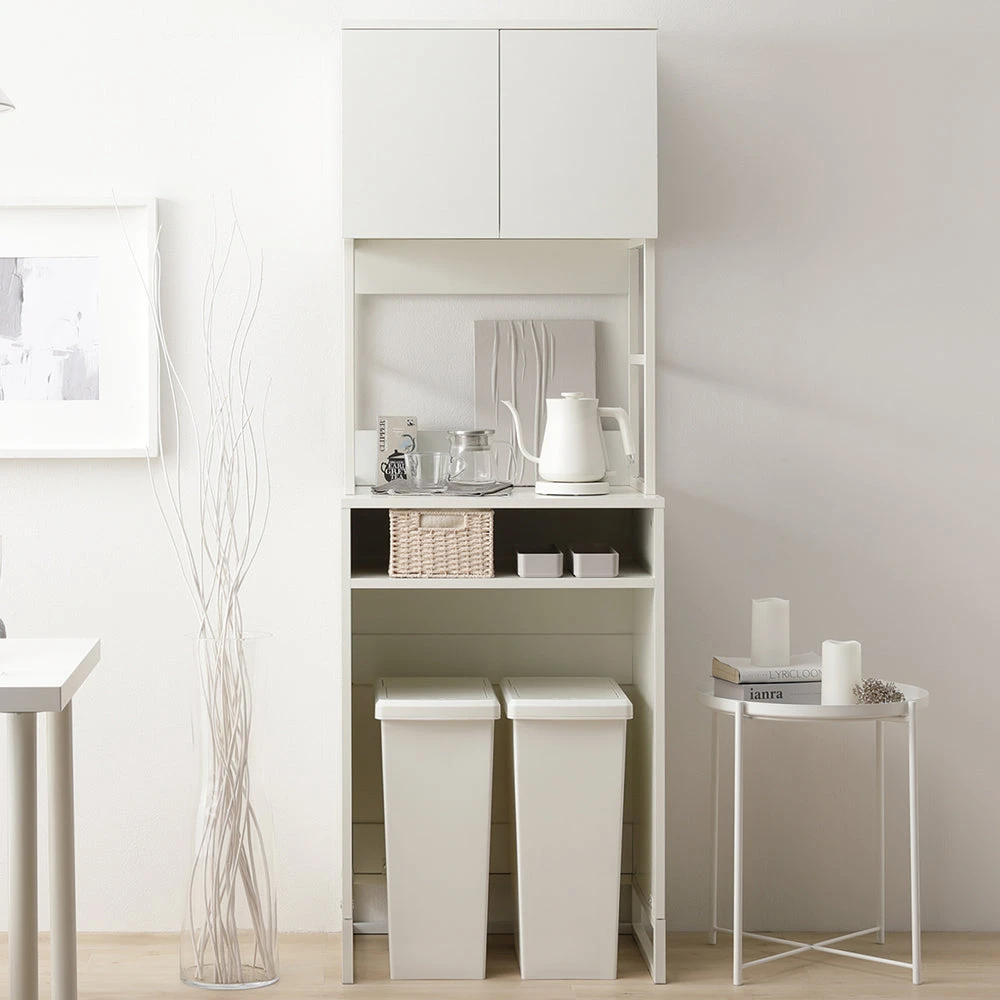 異素材の質感と広い作業面で家事がはかどるキッチンカウンター ホワイト キッチンボード(ゴミ箱収納) 60cm幅