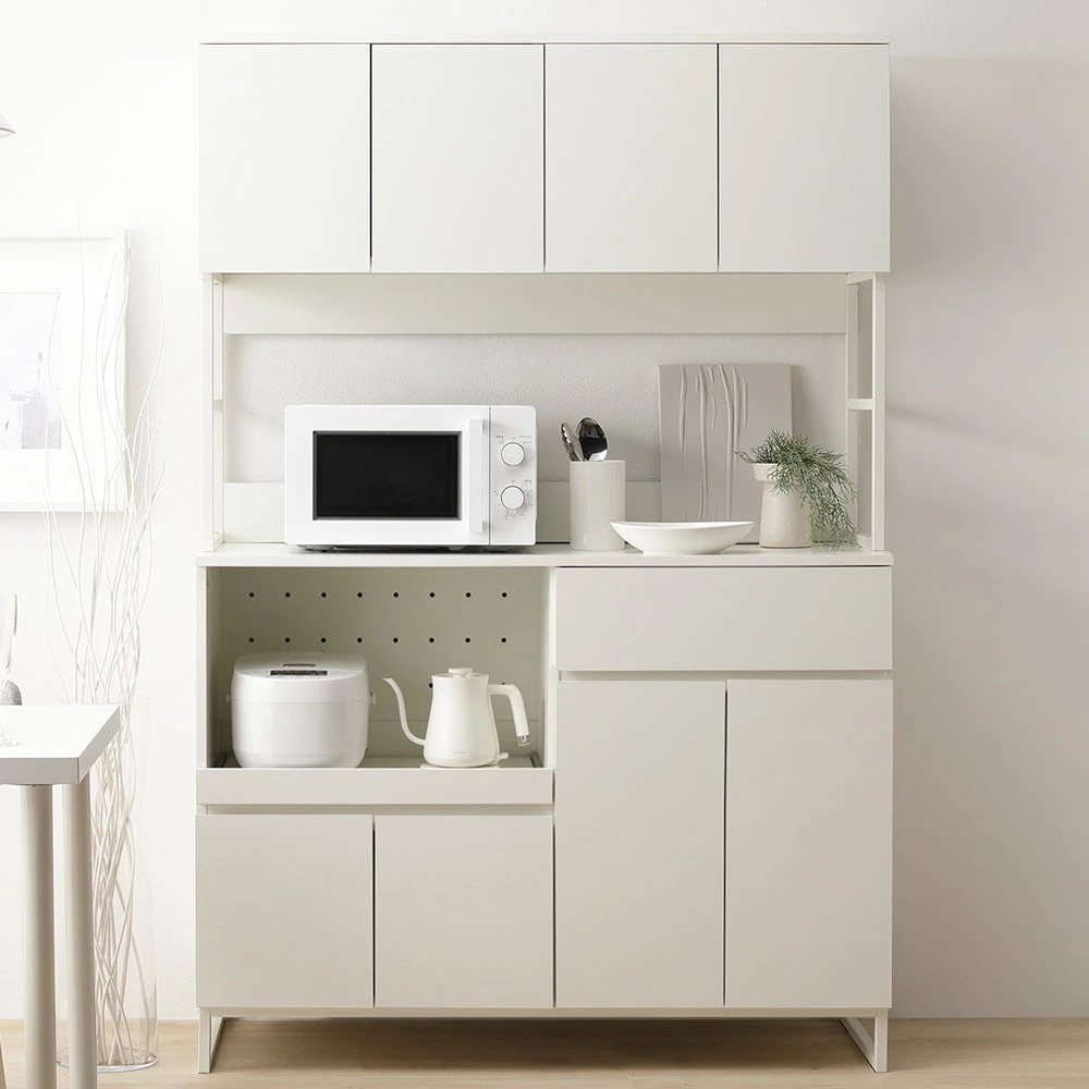 異素材の質感と広い作業面で家事がはかどるキッチンカウンター ホワイト キッチンカウンター 120cm幅
