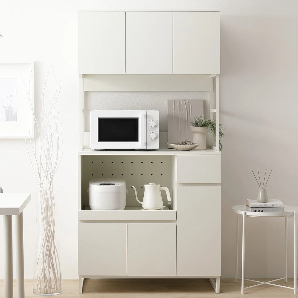 異素材の質感と広い作業面で家事がはかどるキッチンカウンター ホワイト キッチンボード 90cm幅