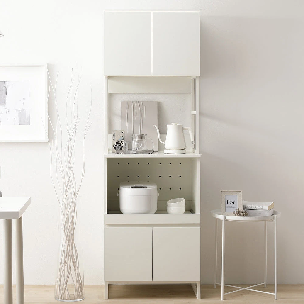 異素材の質感と広い作業面で家事がはかどるキッチンカウンター ホワイト キッチンボード 60cm幅
