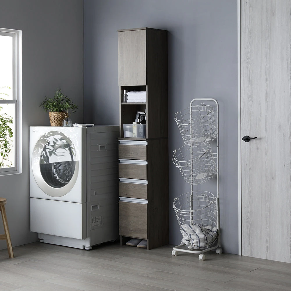 フラット面で掃除がしやすく収納力も高いランドリーチェスト グレージュ 幅30cm