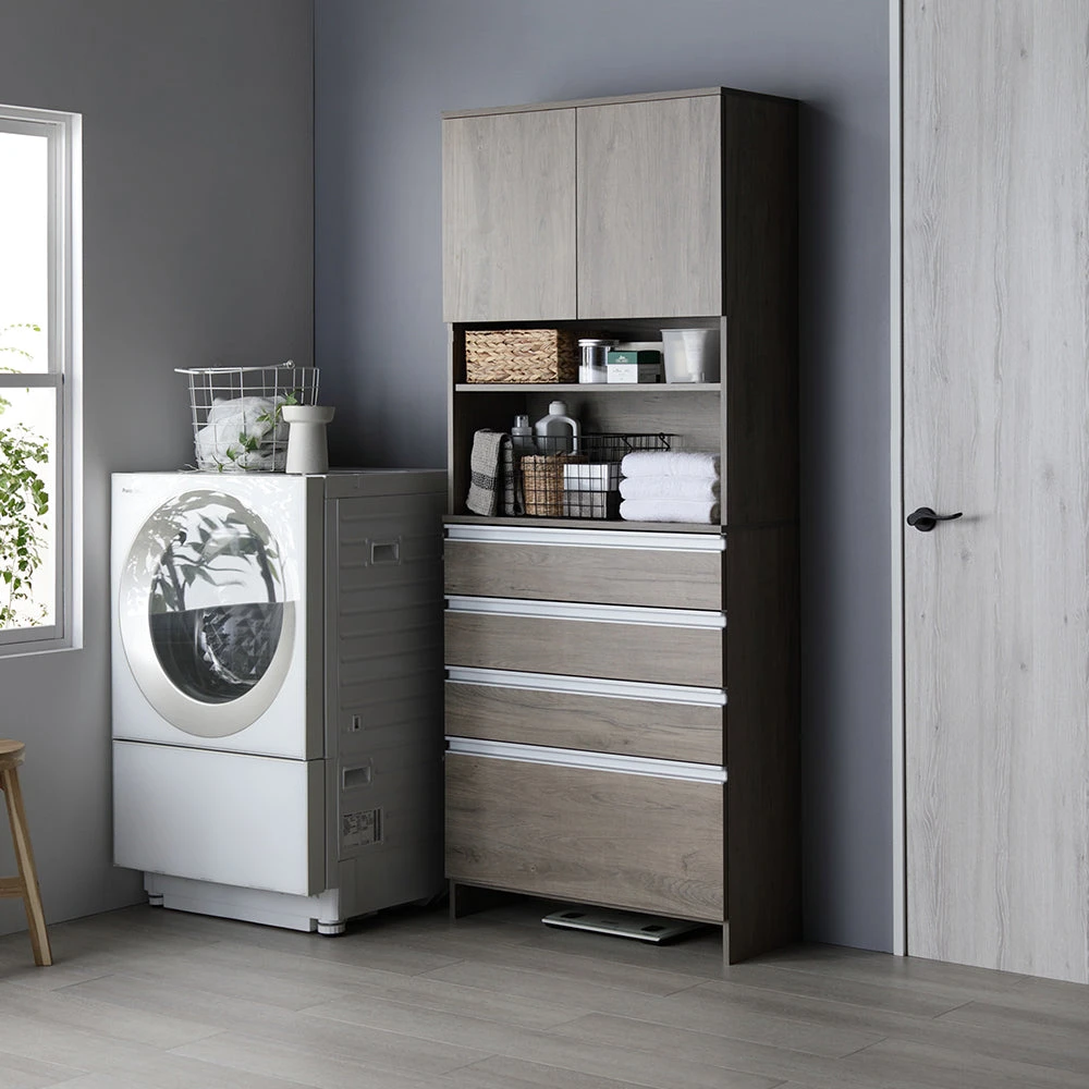 フラット面で掃除がしやすく収納力も高いランドリーチェスト グレージュ 幅60cm