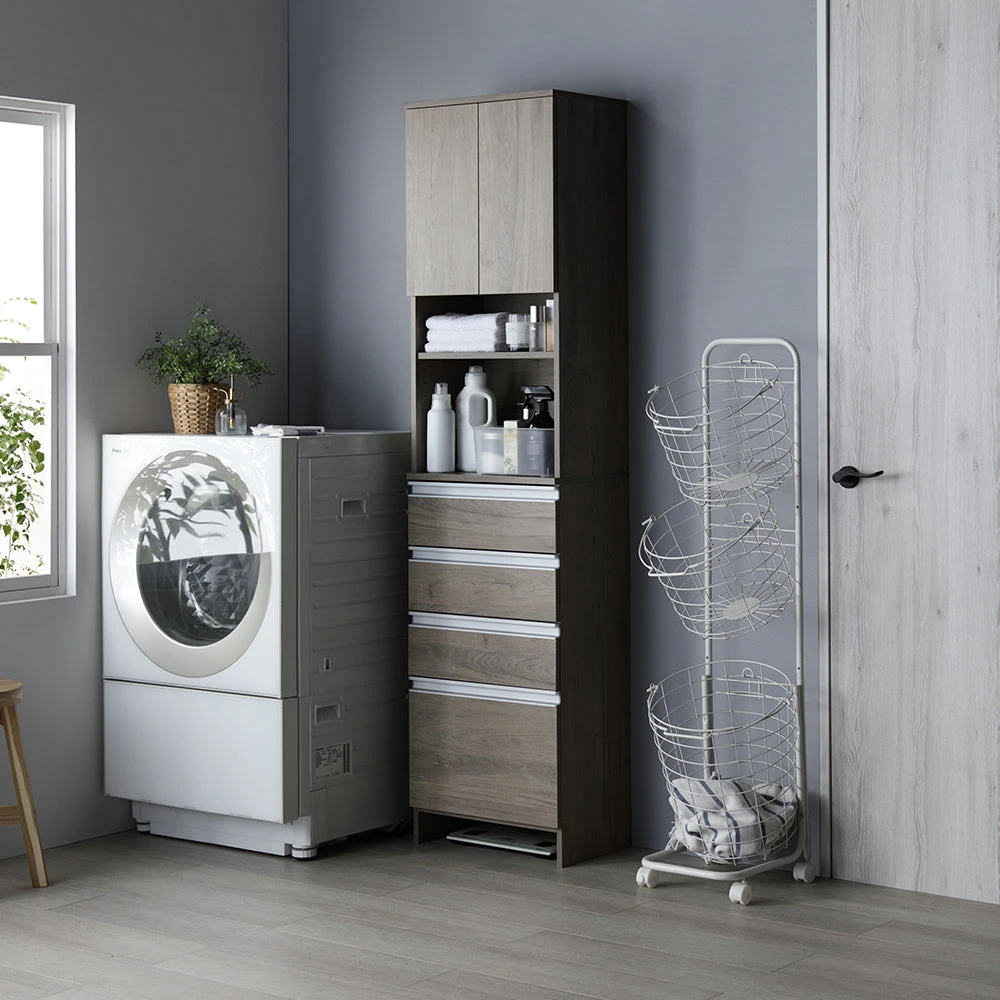 フラット面で掃除がしやすく収納力も高いランドリーチェスト グレージュ 幅45cm
