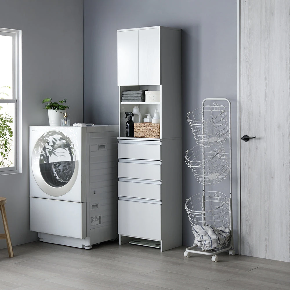 フラット面で掃除がしやすく収納力も高いランドリーチェスト ホワイト 幅45cm