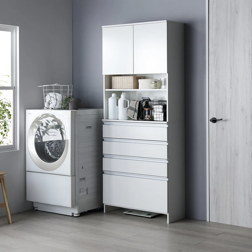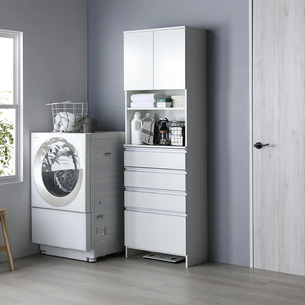 フラット面で掃除がしやすく収納力も高いランドリーチェスト ホワイト 幅60cm