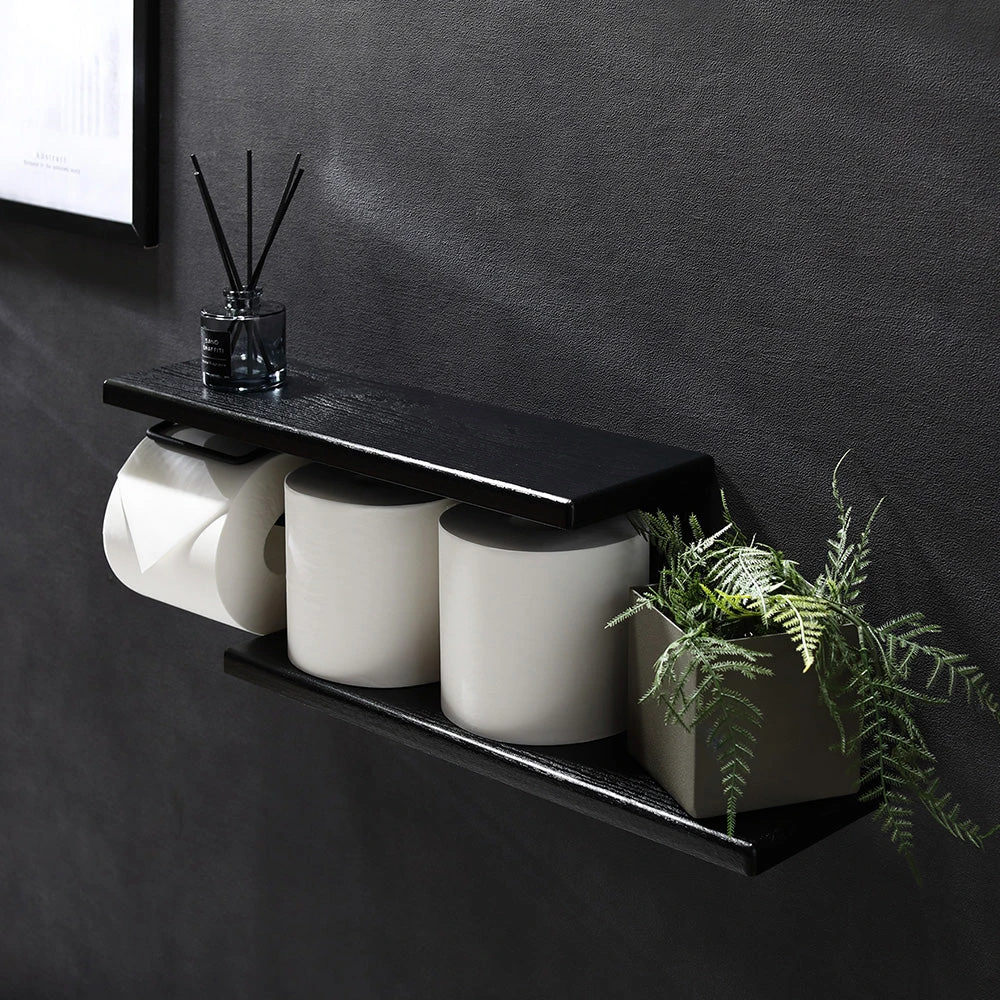 美しい木肌とタオルバーで整い、賃貸でも設置しやすいトイレ収納 スチール ブラック