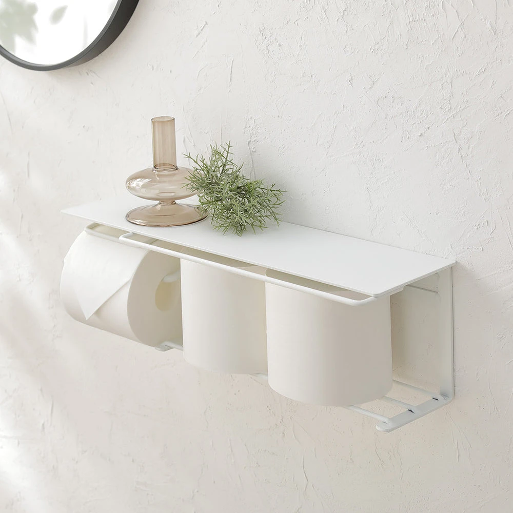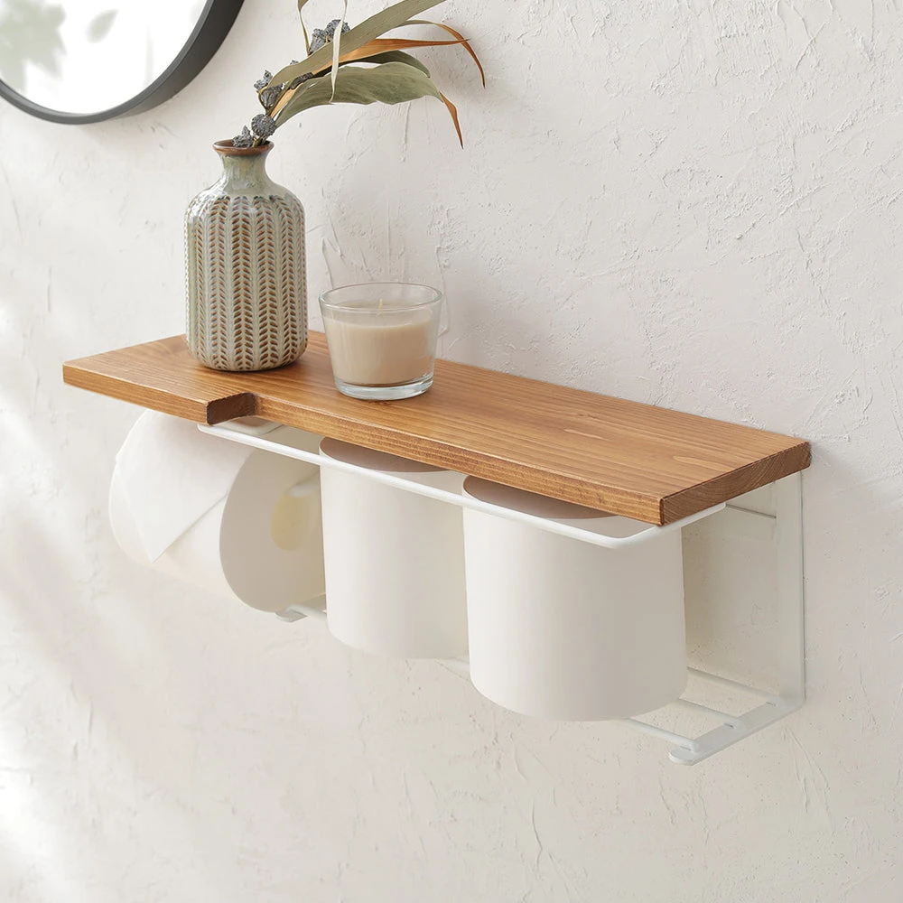 美しい木肌とタオルバーで整い、賃貸でも設置しやすいトイレ収納 スチール ホワイト