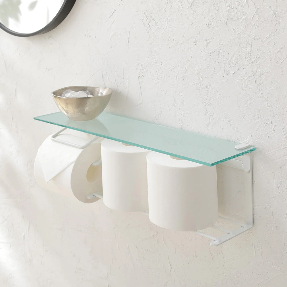 美しい木肌とタオルバーで整い、賃貸でも設置しやすいトイレ収納 ガラス ホワイト
