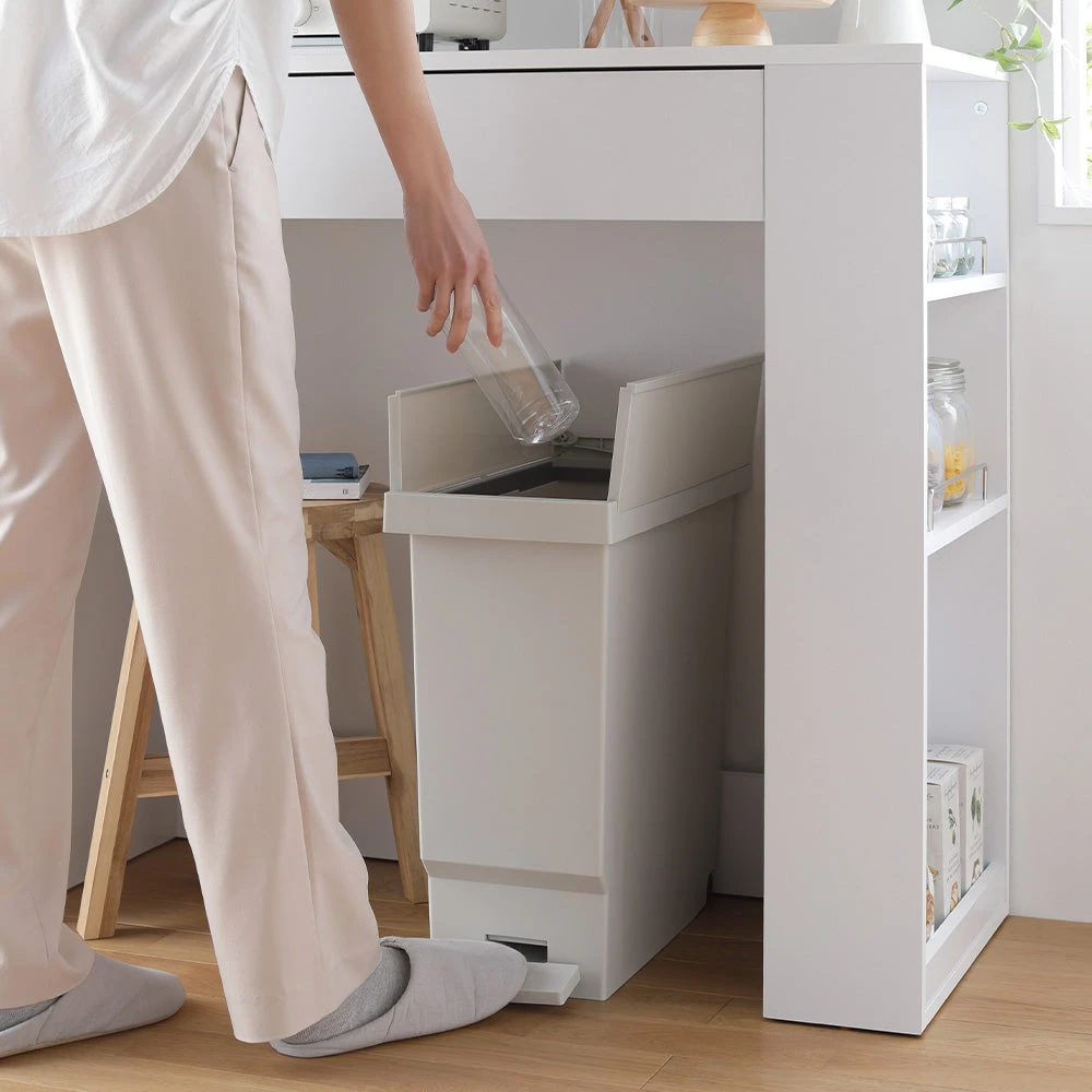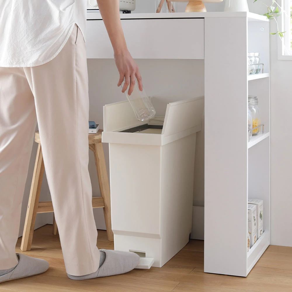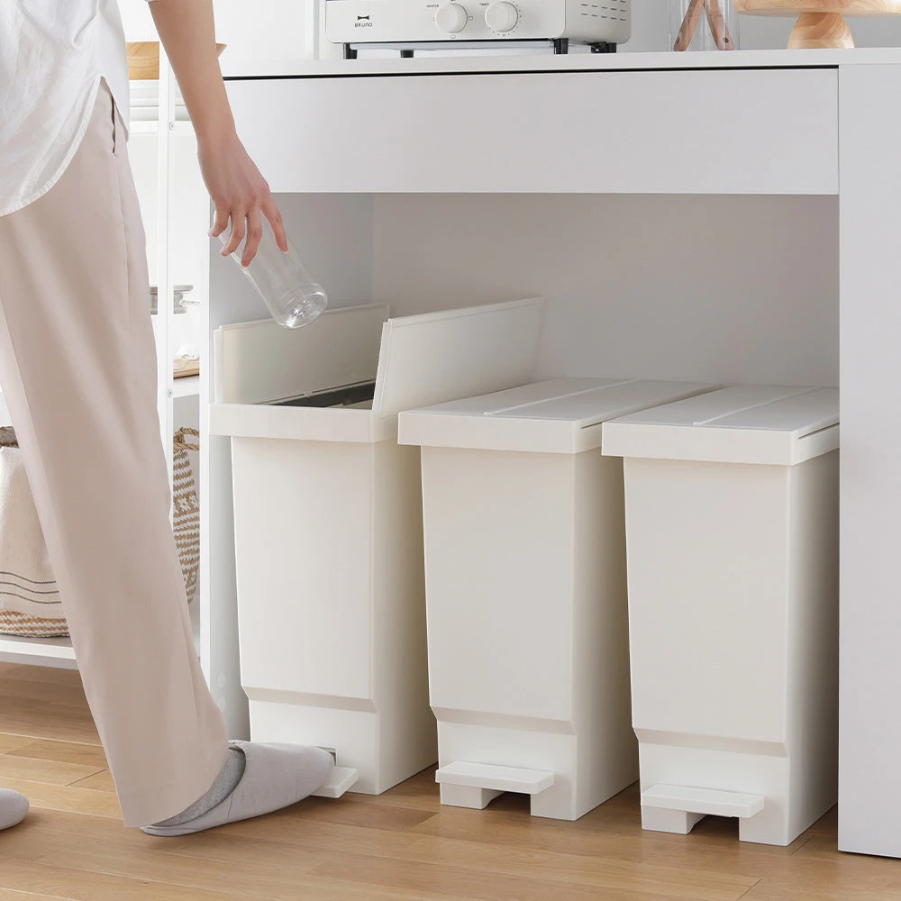 ニオイが広がりにくく清潔に使えて見た目も整う省スペースペダル式バタフライ開閉ごみ箱32L 3個組 オフホワイト