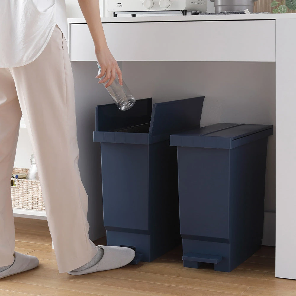 ニオイが広がりにくく清潔に使えて見た目も整う省スペースペダル式バタフライ開閉ごみ箱32L 2個組 ナイトブルー
