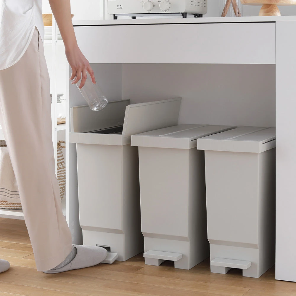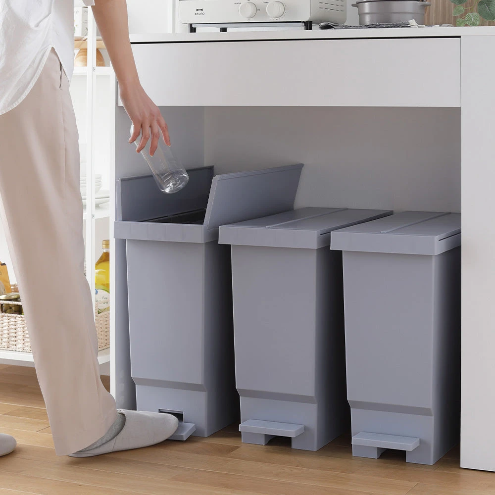 ニオイが広がりにくく清潔に使えて見た目も整う省スペースペダル式バタフライ開閉ごみ箱32L 3個組 ライトグレー