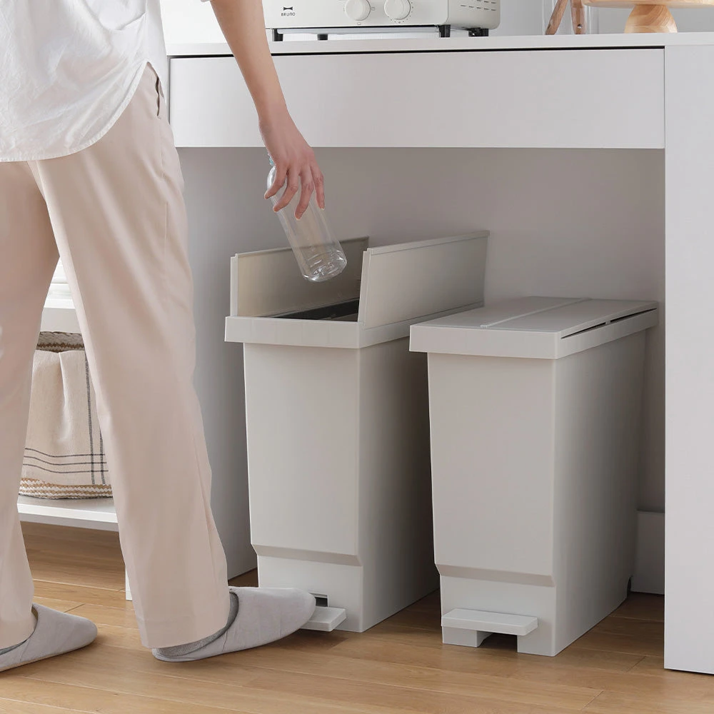 ニオイが広がりにくく清潔に使えて見た目も整う省スペースペダル式バタフライ開閉ごみ箱32L 2個組 ライトグレー