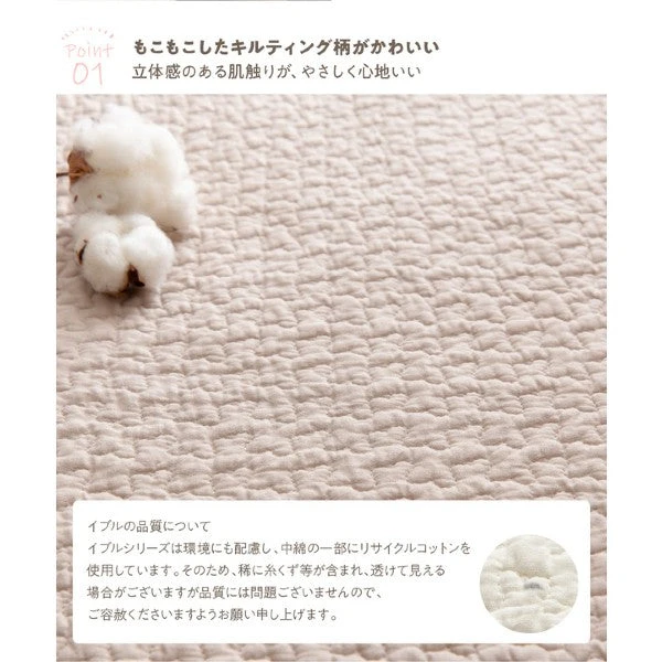 薄すぎず厚すぎない中わたで通年使いに適したバランス。春夏は軽やかに、秋冬はふんわりと快適に過ごせます。