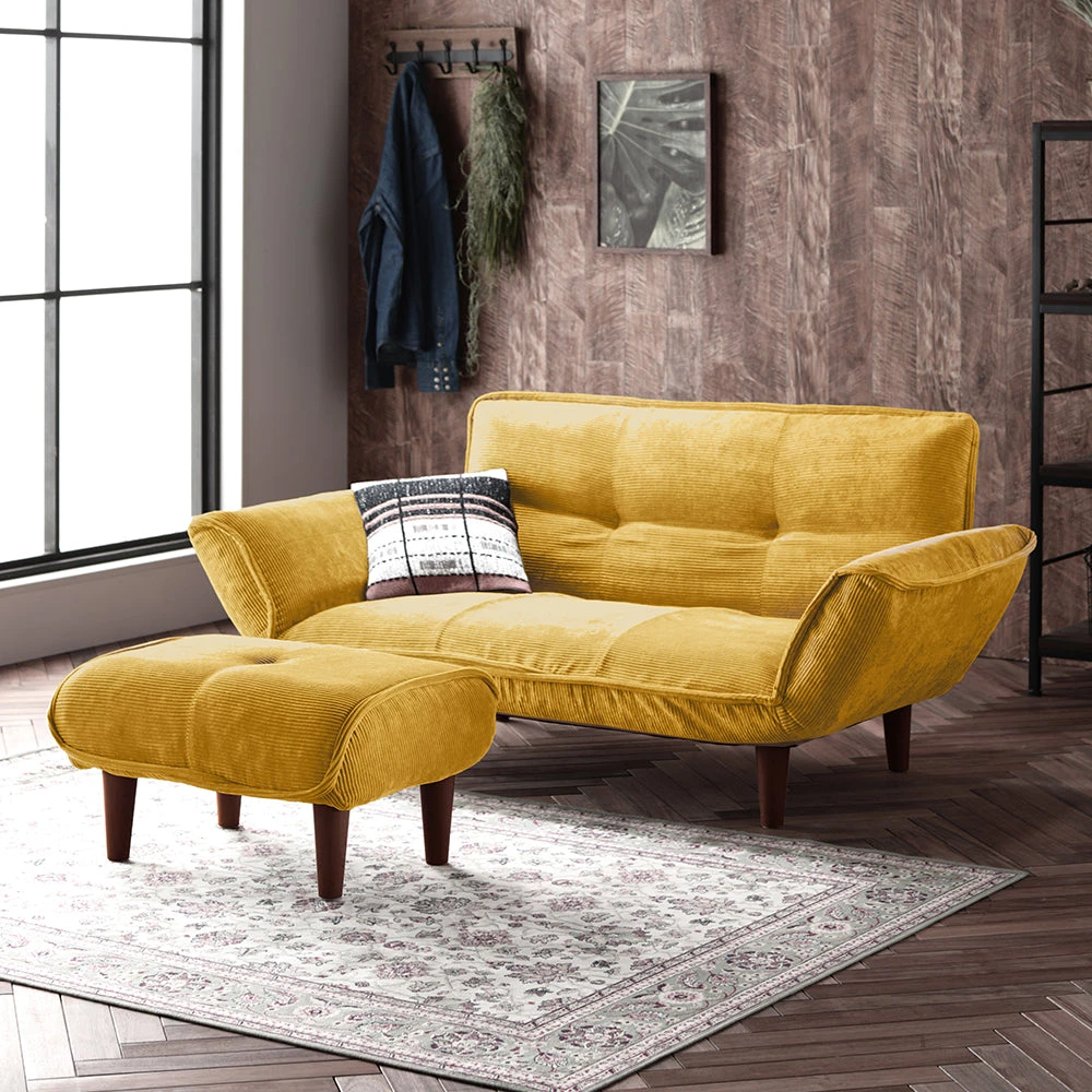 当ページはコーデュロイ イエローカラー、2人掛けカウチ(2人掛け+オットマン)の仕様のページです。