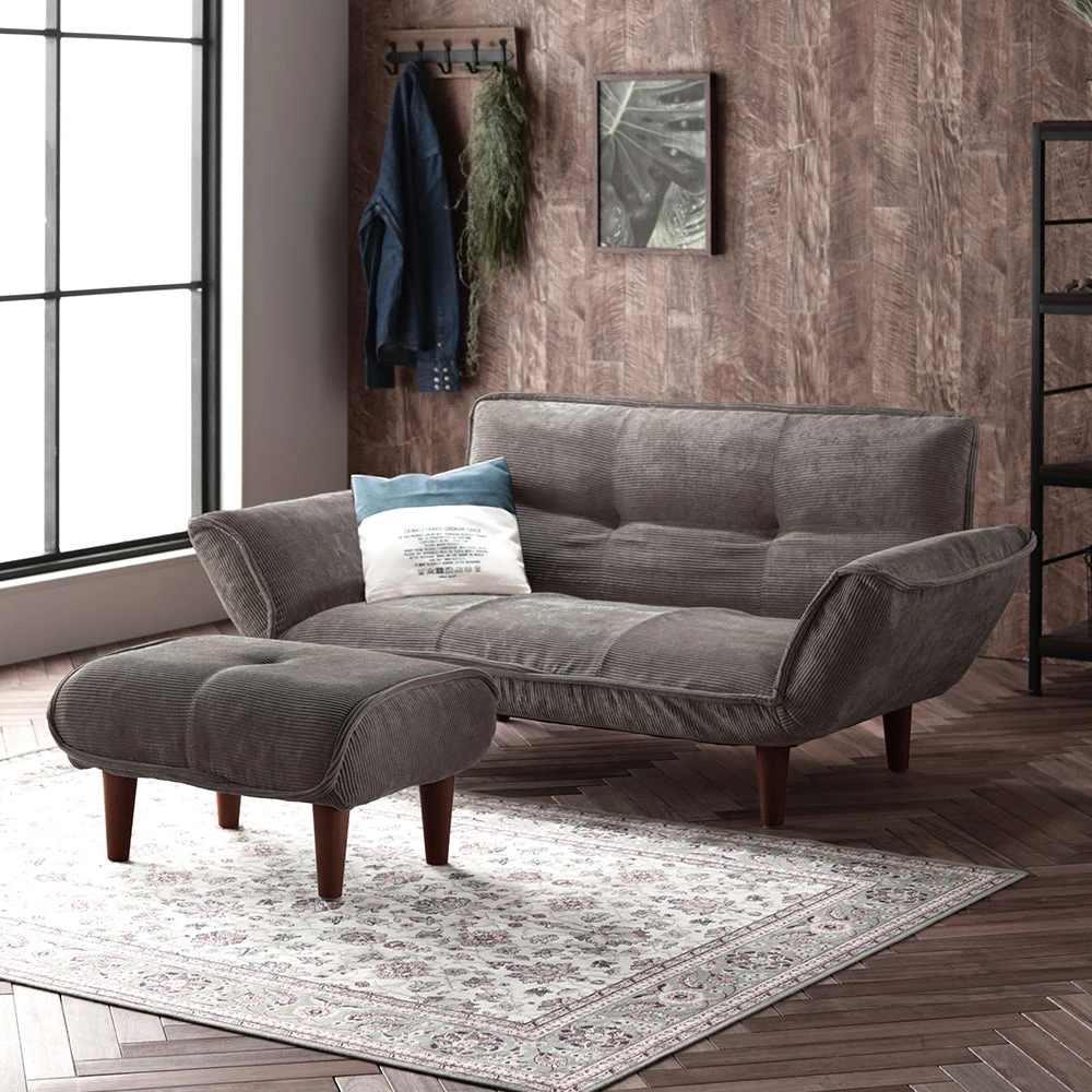 コーデュロイ ベージュ 2人掛けカウチ(2人掛け+オットマン)