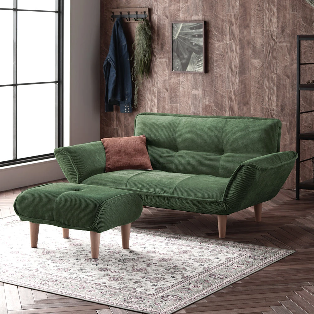 当ページはコーデュロイ モスグリーンカラー、2人掛けカウチ(2人掛け+オットマン)の仕様のページです。