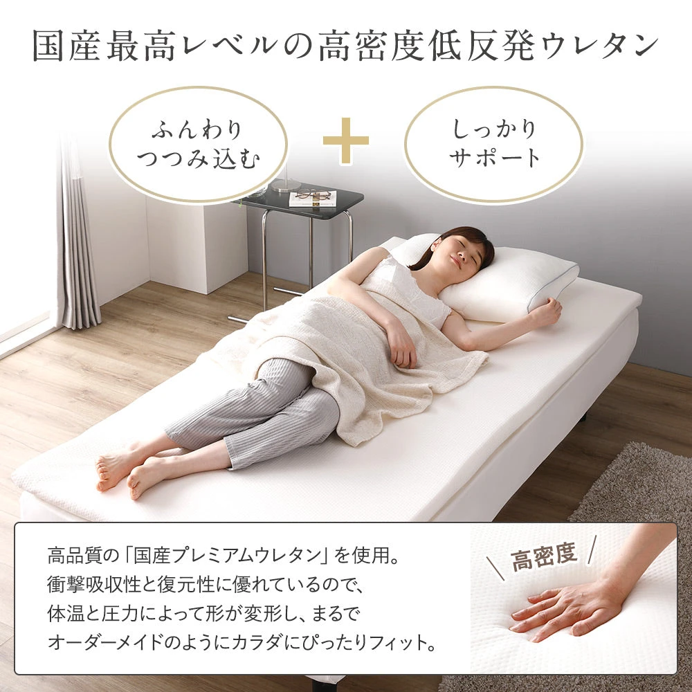 マット端部まで支える感触を確保し、着座や乗り降り時も不安定さを抑える。ベッド周りの動作がしやすく、日常の使い勝手を高める。