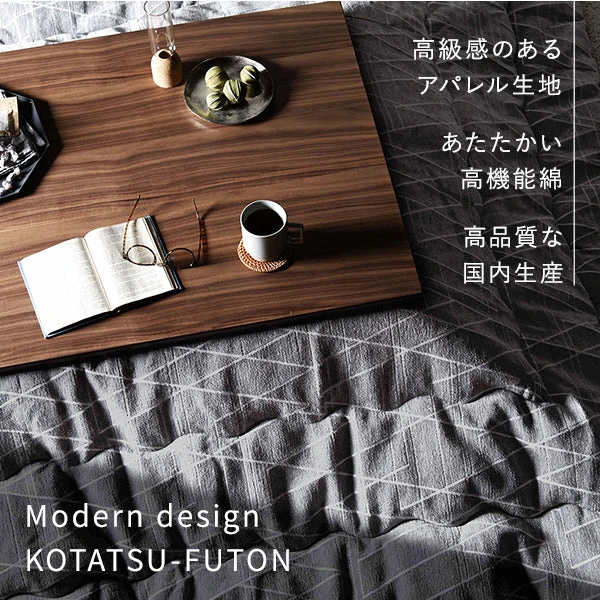 滑らかな裏地で軽やかに暖をまとう薄掛けのこたつ掛け布団