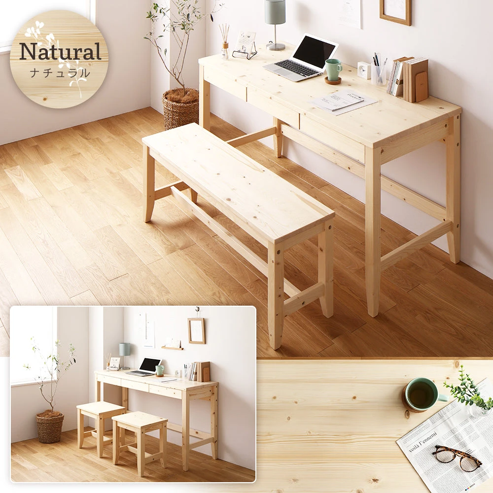 広々天板で作業がはかどる、やさしい質感の天然木デスクセット