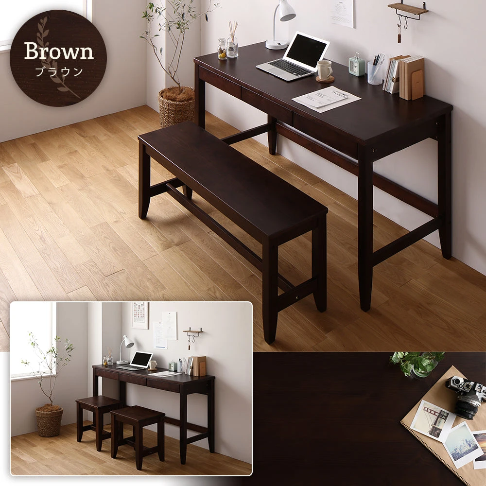 ブラウン デスクセット(デスク幅140×奥行60cm+スツール2脚)