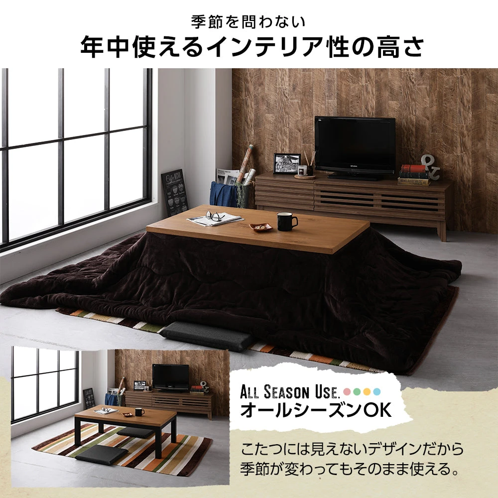 布のかさばりが無いぶん見た目が軽やかで、季節外もローテーブルとして違和感なく使用可能。空間が広く見え、住まいのテイストにも自然に溶け込みます。