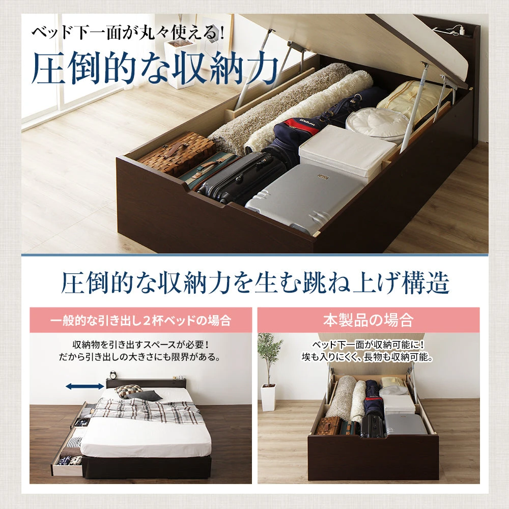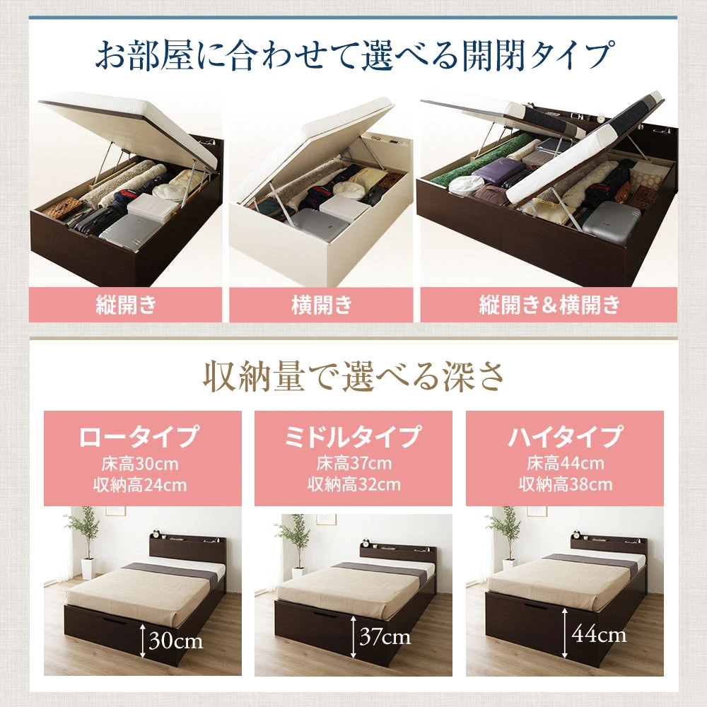本体と一体化した大容量スペースに季節物やリネンをまとめて保管できます。出し入れしやすい奥行き設計で、使いたい物を素早く取り出せます。
