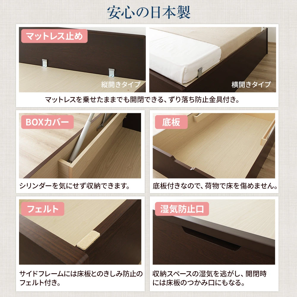 寝具や収納物が動きにくいよう保持性を高めた設計です。日常の使用で位置が乱れにくく、整った状態を保ちやすくなります。