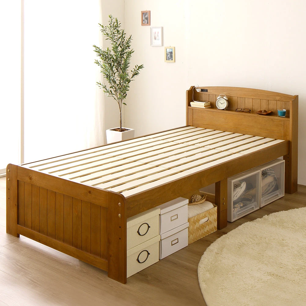 引き出しと高さ調整で床下収納のカントリー調棚付きベッド